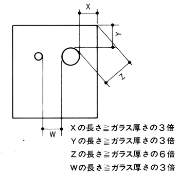 エグリ丸穴の直径は、ガラスの厚さ以上とするのが一応の目安です。
