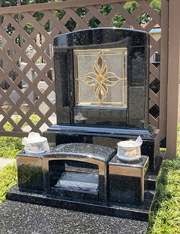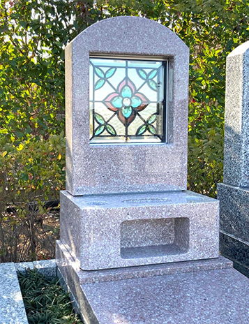 「Pure Memorial」は、墓石に組み込むためのステンドグラスに、エッチングガラス(彫刻ガラス)も組み入れることも可能です。 既製品は100種類以上の豊富なデザインとサイズをご用意しており、アルミ枠を施しましても10日間~2週間程度でお届けできます。 また、専任デザイナーがお客様のご要望に応じたサイズ・デザインでデザイン画を開発しご提案致します。 さらに背面ミラー仕様の「ミラーステンド」や、厚みのあるクリスタルガラスを使用した「Pure Crystal」、高温でガラスを融合させた 「FUSING GLASS」などもご提供できますので、故人様に想い吹き込んだオリジナルのお墓が創ることができます。